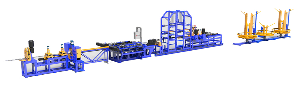 >> 钢筋调直机构:主筋和腹杆筋由盘料经矫直机后矫直后焊接,自动化程度高,生产效率高.