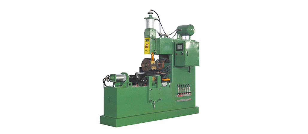 针对刹车蹄产品的结构及工艺要求,本公司自行开打了刹车蹄轮点焊机。该设备主要由卧式机架、旋转导电机构、驱动机构、装夹机构控制系统以及冷却系统组成。并采用伺服电机驱动, PLC程序控制、触摸屏操作的方式,保证了焊机速度的均匀性、调整的方便性、质量稳定性、并实现了刹车蹄产品边焊接边成型的工艺要求,大大提高了生产效率。